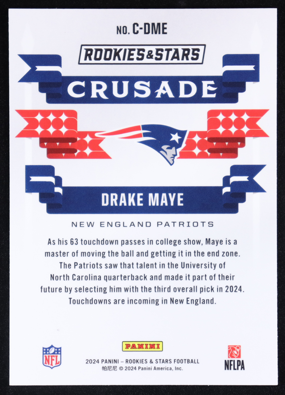 Drake Maye 2024 Panini Rookies & Stars Crusade #C-DME RC