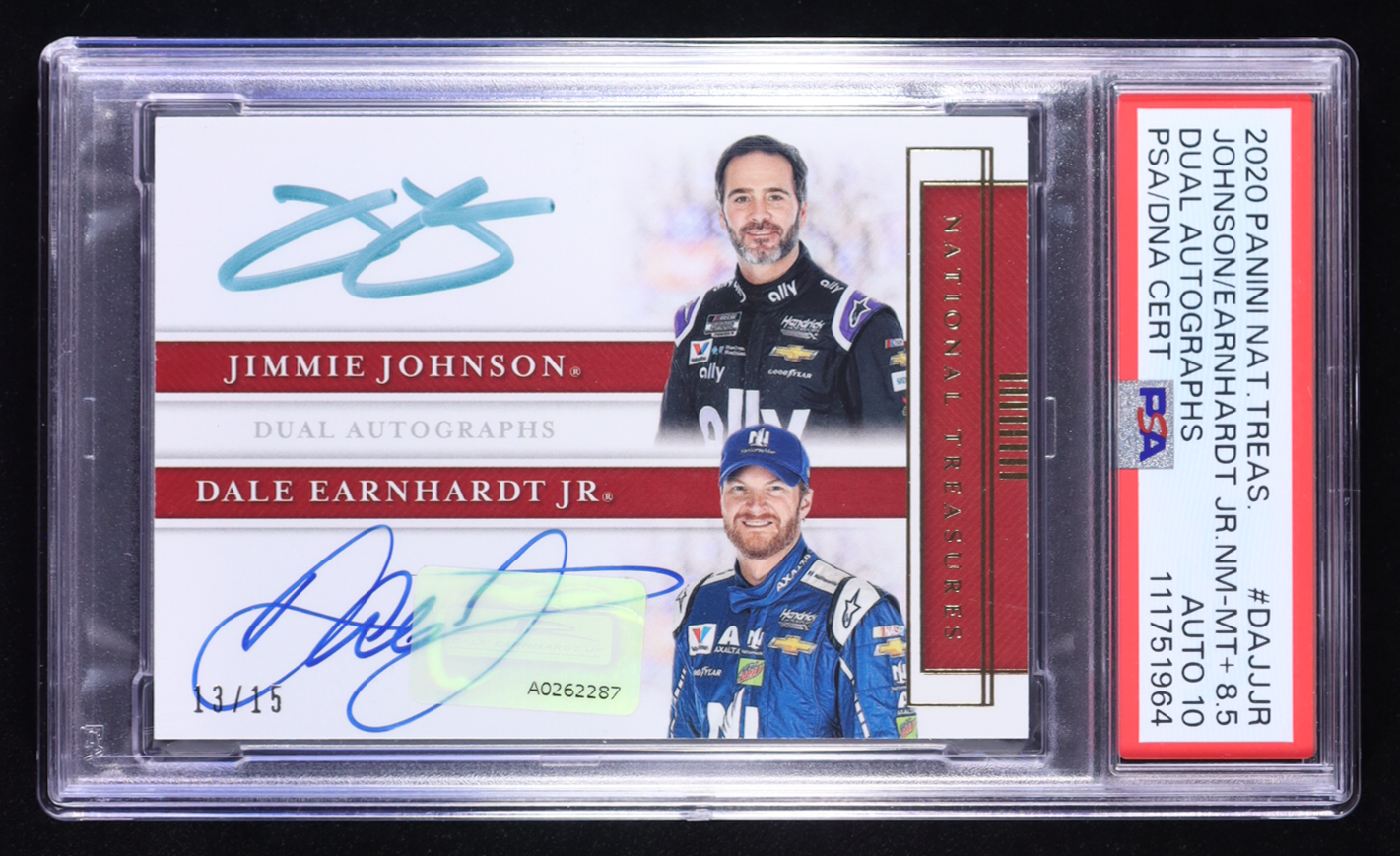 Dale Earnhardt Jr. / Jimmie Johnson 2020 Panini National Treasures Dual Autographs #2 #13/15 (PSA 8.5 | Autograph Graded PSA 10)
