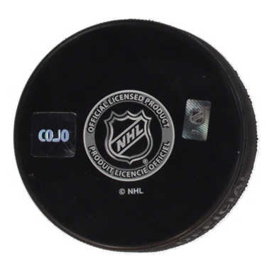 Edmonton Oilers Logo Hockey Puck. Hand-signed by Grant Fuhr (HOF), Andy Moog, and Bill Ranford. Please note, there are stains throughout the puck.