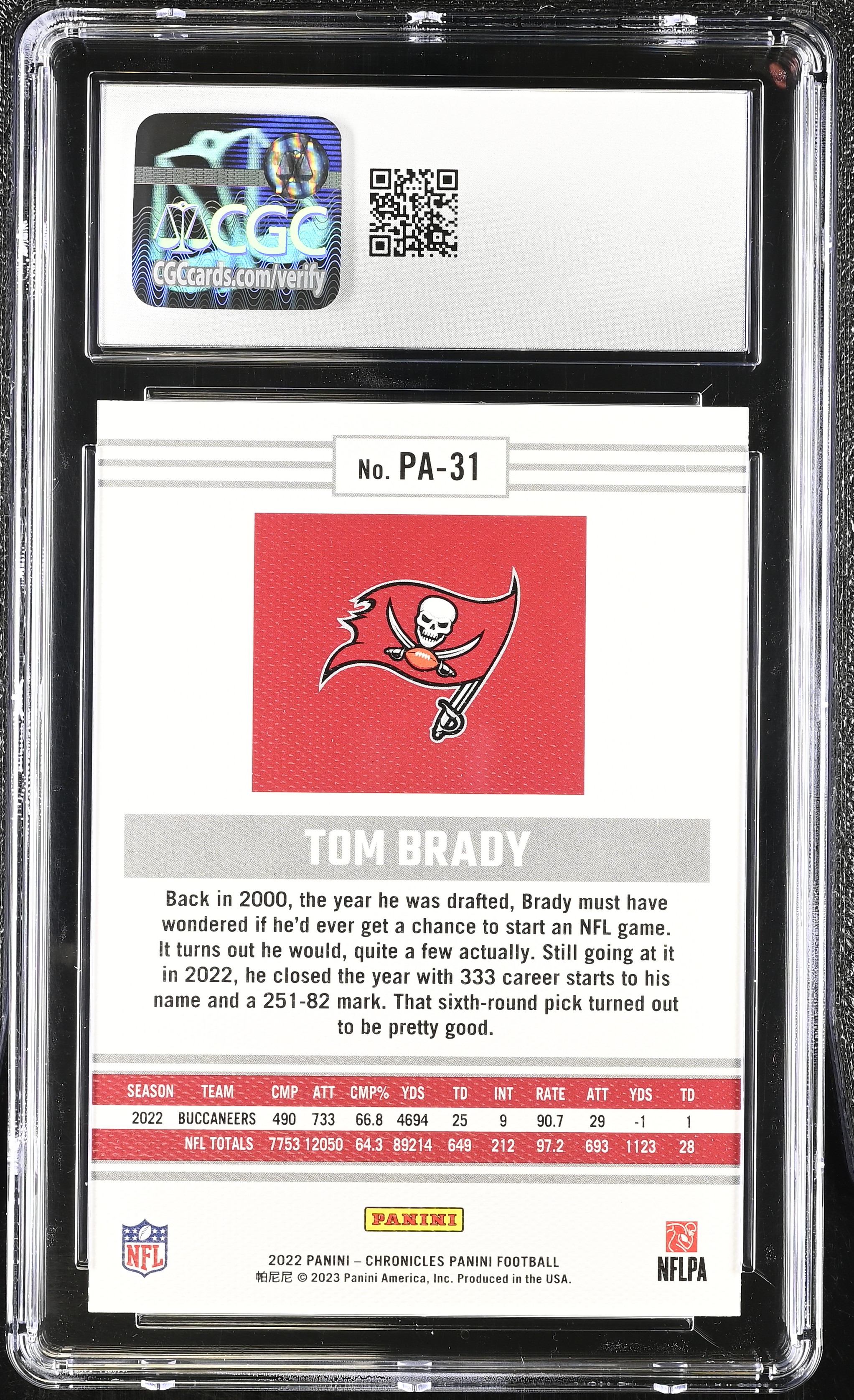 Tom Brady 2022 Panini Chronicles Panini #PA-31 (CGC 10)