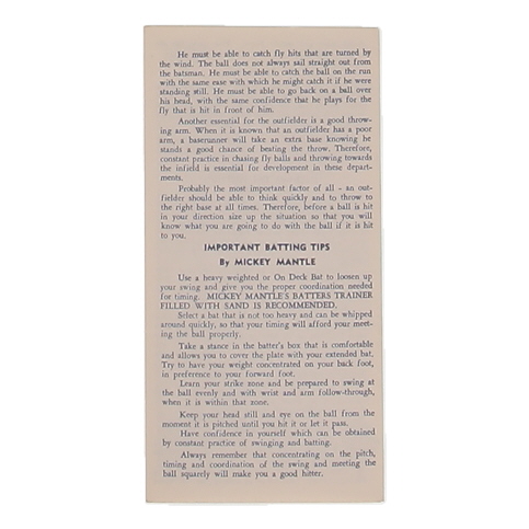 Mickey Mantle 1962 Baseball Tips & Tricks Booklet