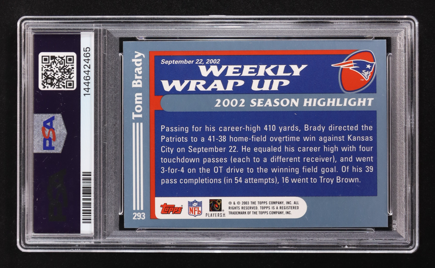 Tom Brady 2003 Topps #293 WW (PSA 9)