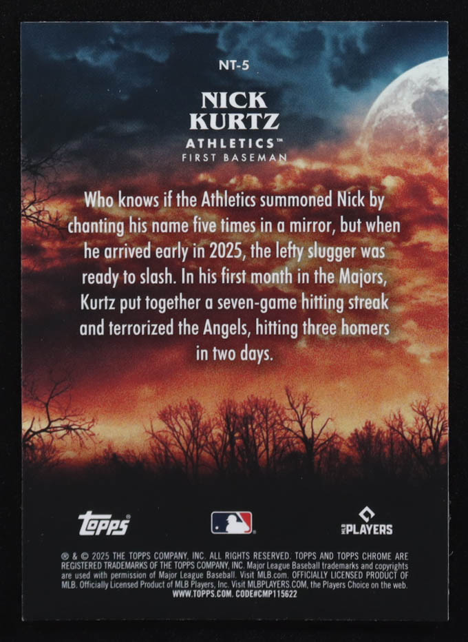 Nick Kurtz 2025 Topps Chrome Update Night Terrors #NT5 RC