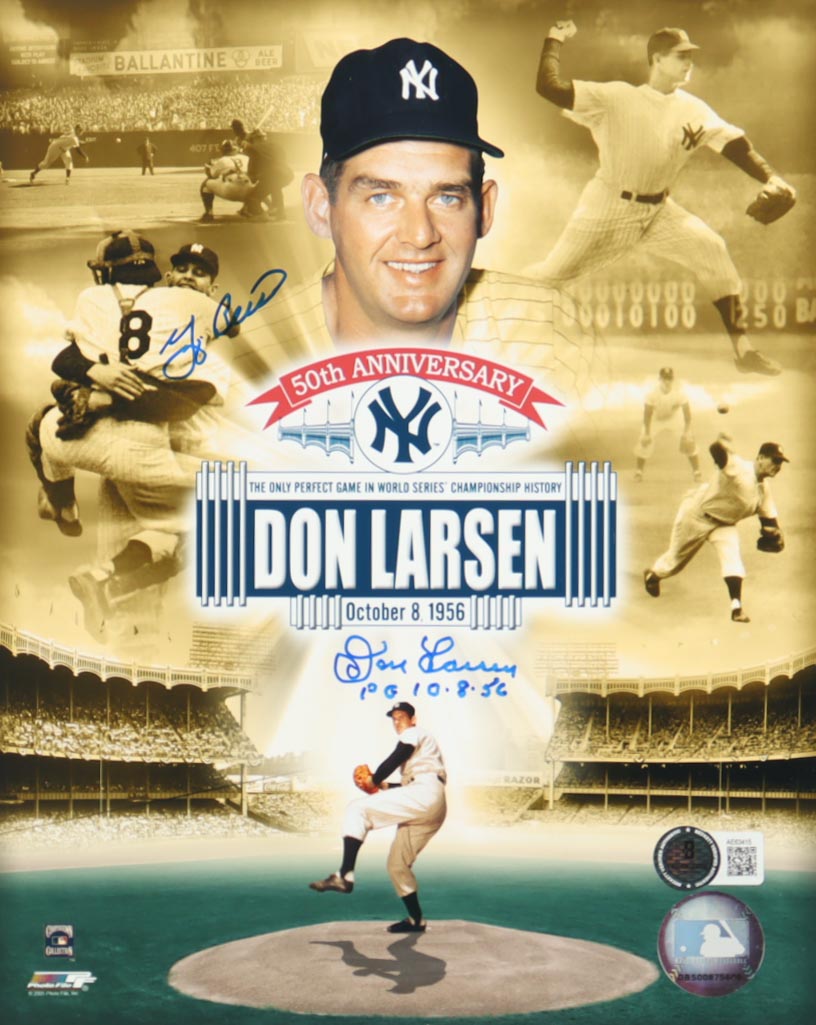 Yogi Berra & Don Larsen Signed Yankees 8x10 Photo Inscribed "PG 10-8-56" (Beckett)