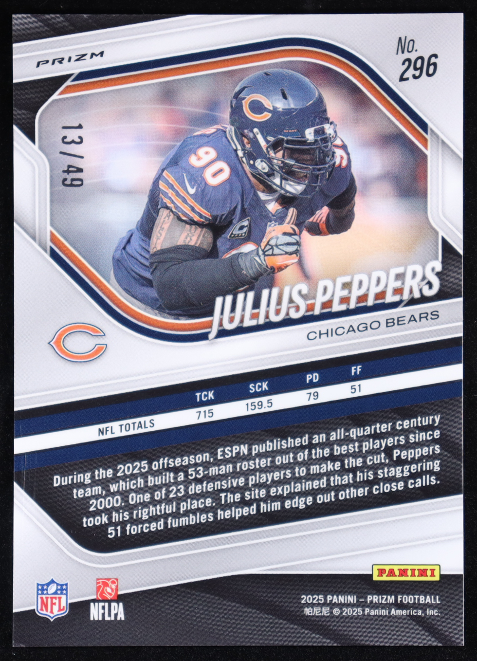 Julius Peppers 2025 Panini Prizm Purple Power #296 #13/49
