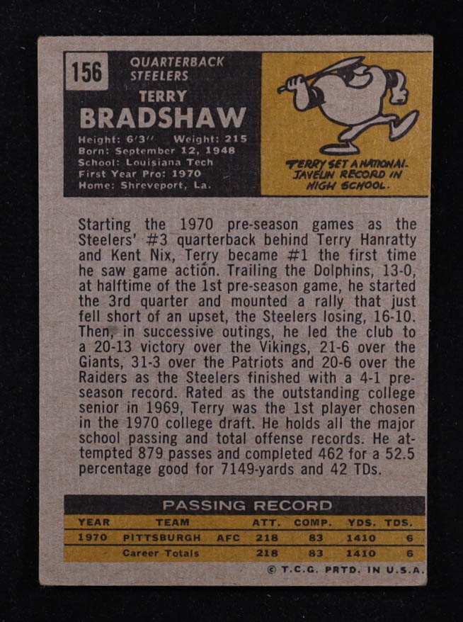 Terry Bradshaw 1971 Topps #156 RC