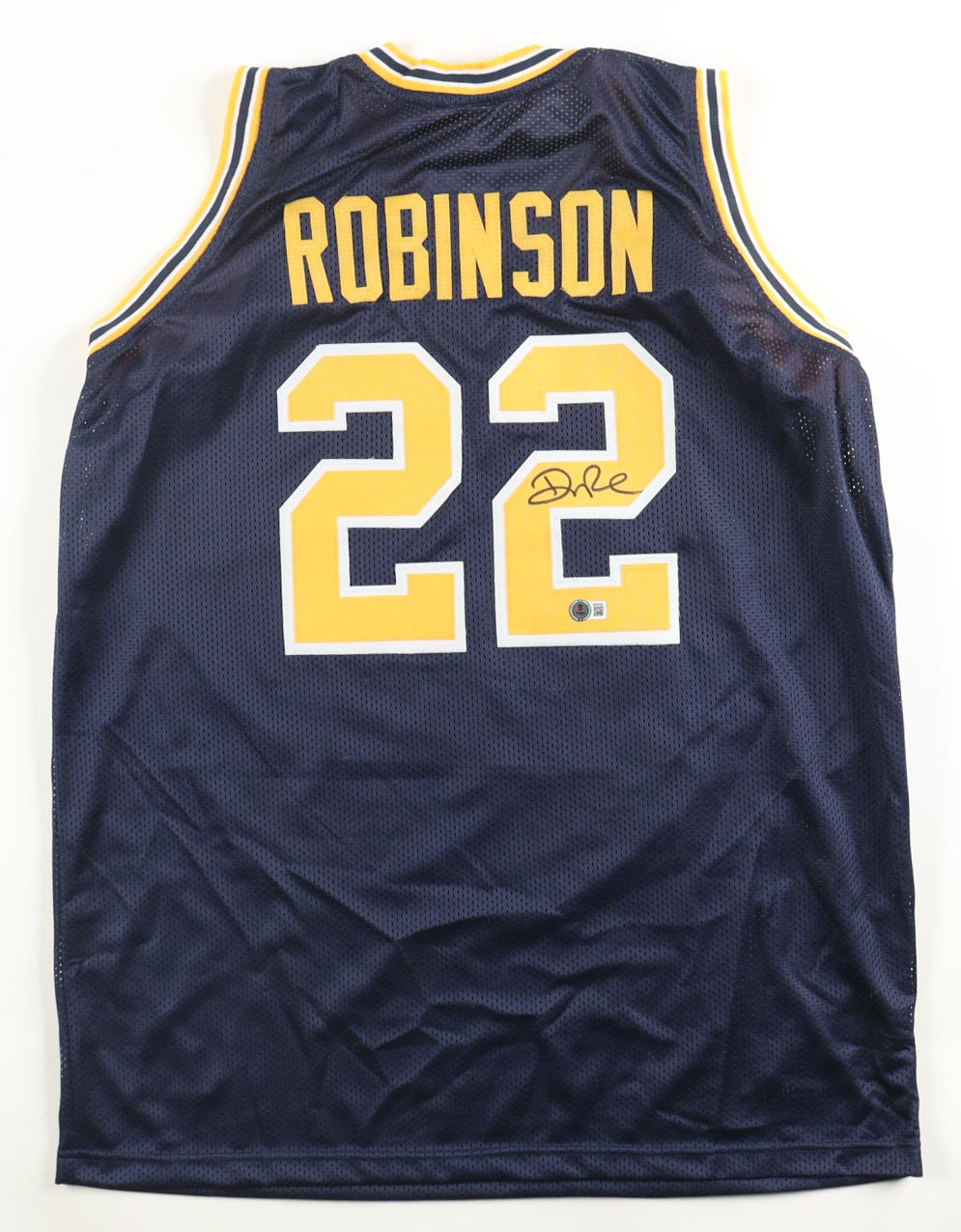 Custom on-court style jersey. Everything is sewn on, size XL. Jersey is hand-signed by Duncan Robinson (Michigan Wolverines).
