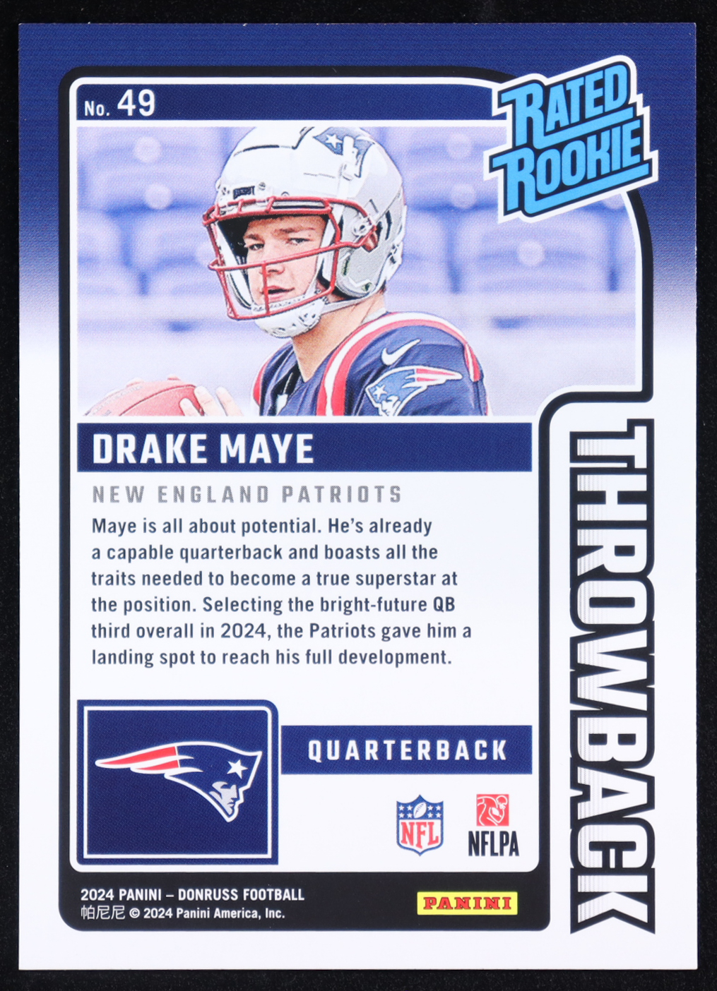 Drake Maye 2024 Donruss Rated Rookies Throwback #49 RC