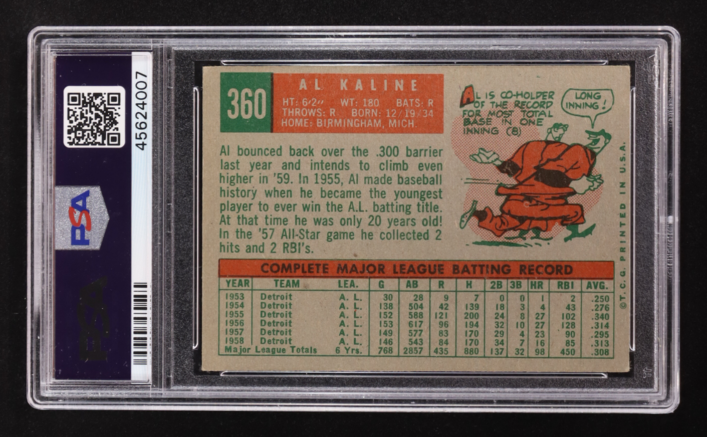 Al Kaline 1959 Topps #360 (PSA 4)