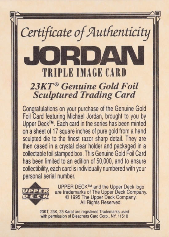 Michael Jordan 1995 Upper Deck Original 23 KT Genuine Gold Foil Sculptured Triple Image