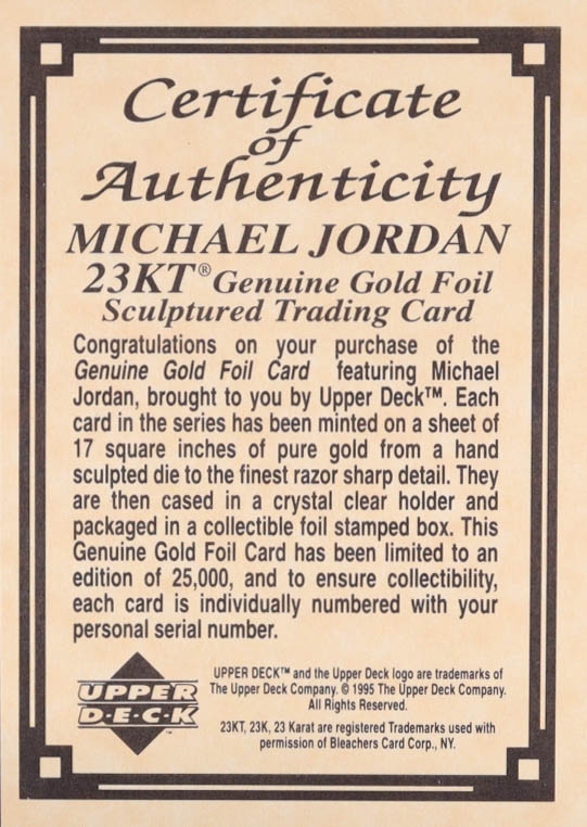Michael Jordan 1995 Upper Deck 23KT Gold Card