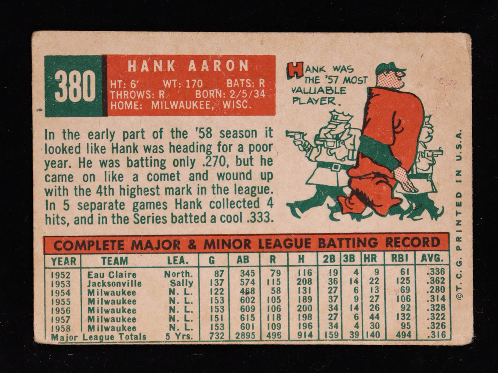 Hank Aaron 1959 Topps #380
