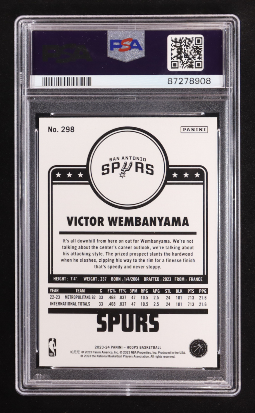 Victor Wembanyama 2023-24 Hoops #298 RC (PSA 10)