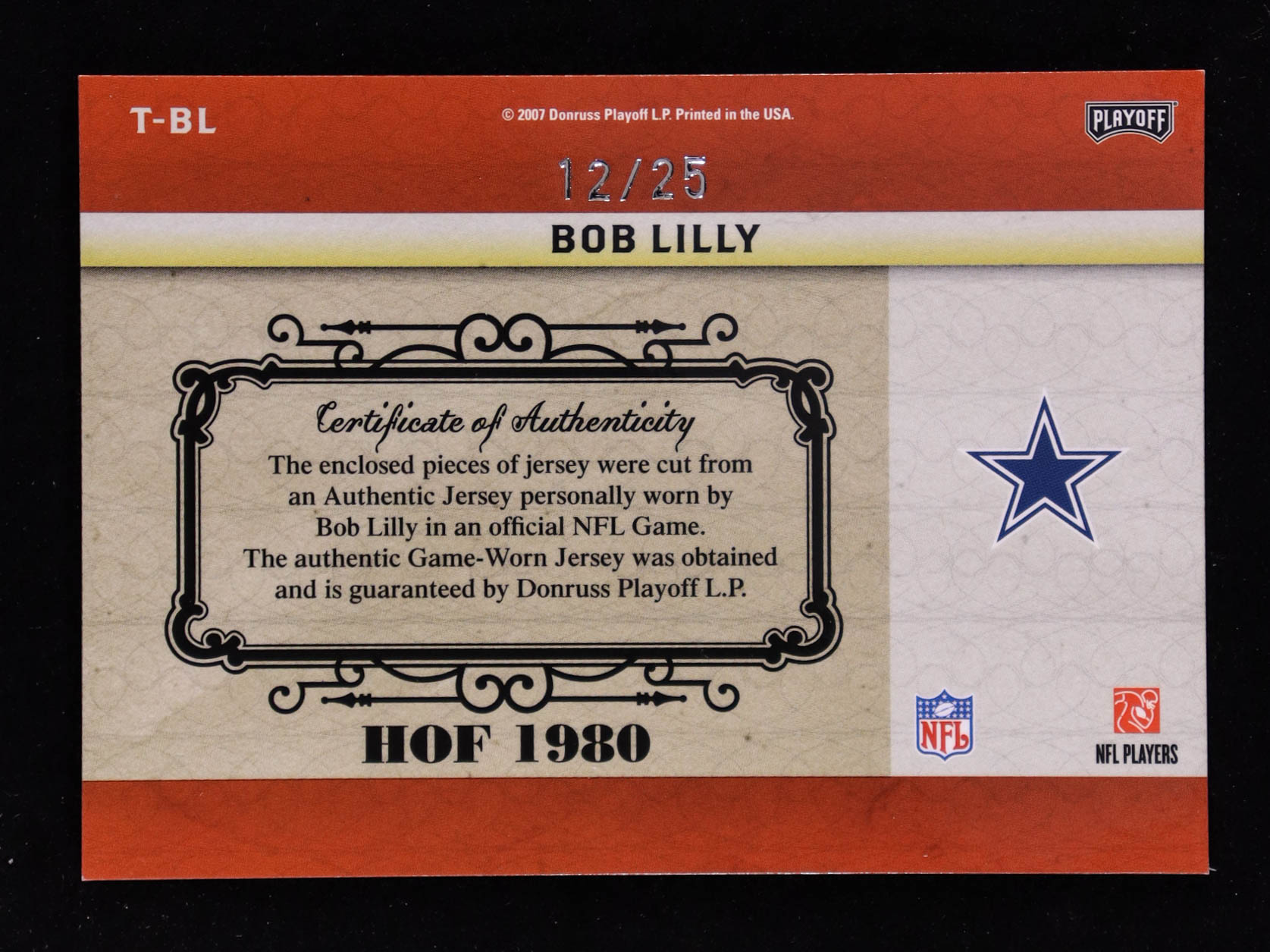 Bob Lilly 2007 Playoff National Treasures Timeline Material HOF #BL #12/25