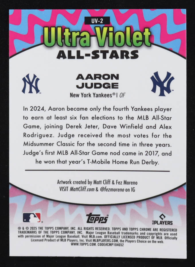Aaron Judge 2025 Topps Chrome Ultra Violet All-Stars #UV2