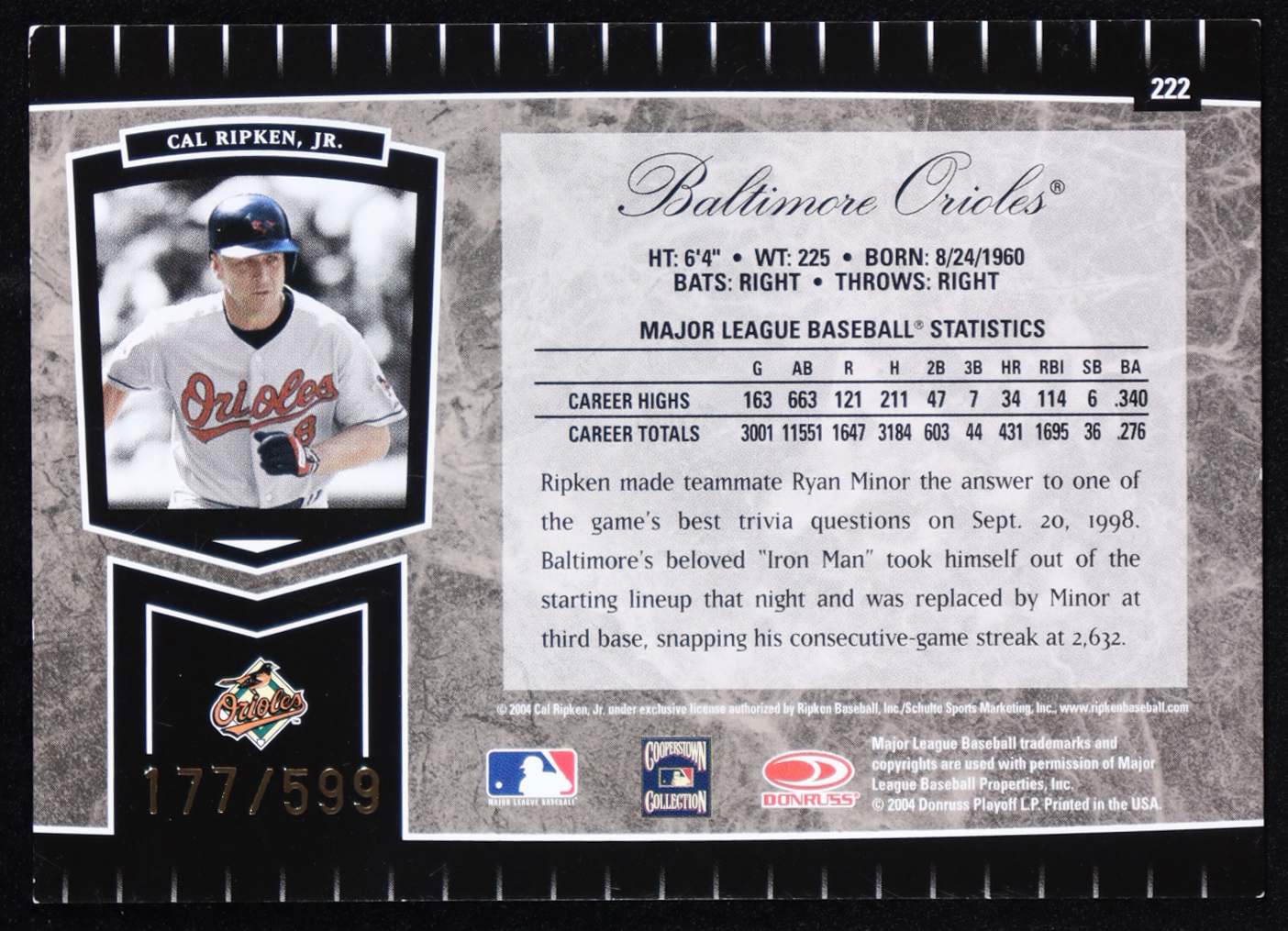 Cal Ripken Jr. 2004 Leaf Certified Cuts LGD #222 #177/599