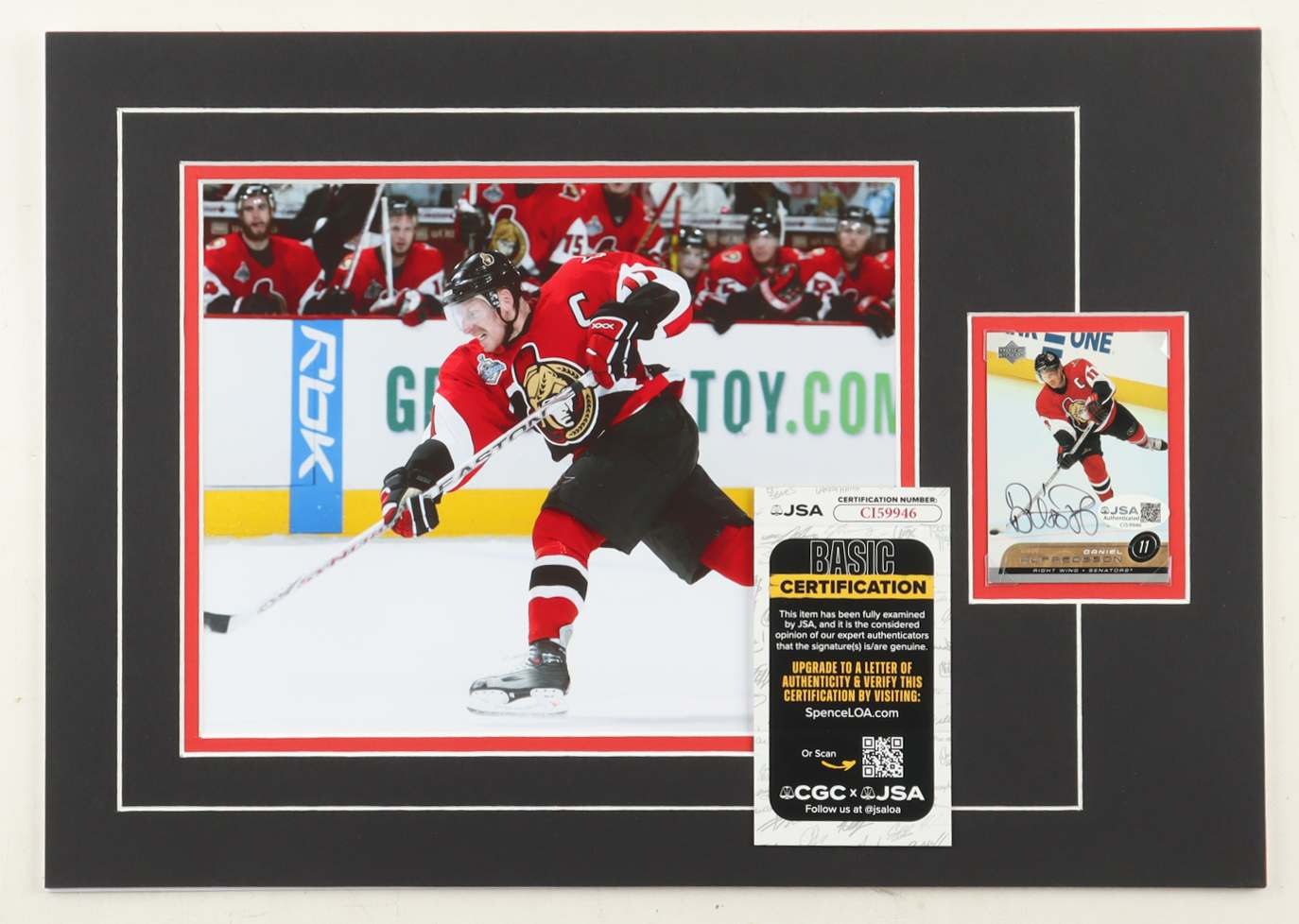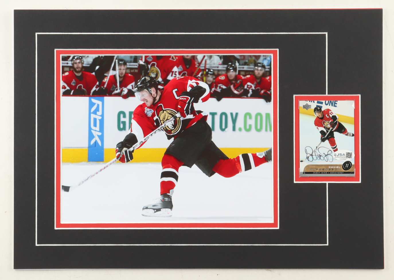 Daniel Alfredsson Signed 12x17 Custom Matted Trading Card Display with Photo (JSA)