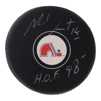 Michel Goulet Signed Nordiques Logo Hockey Puck Inscribed "HOF 98" (COJO)