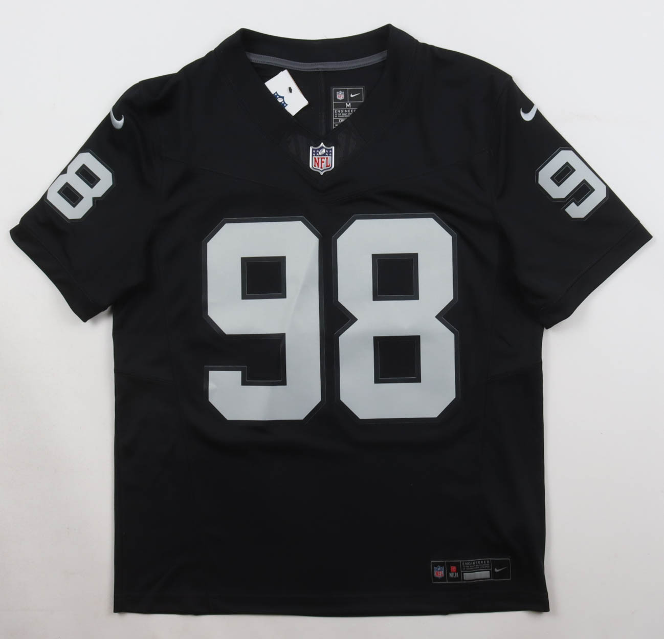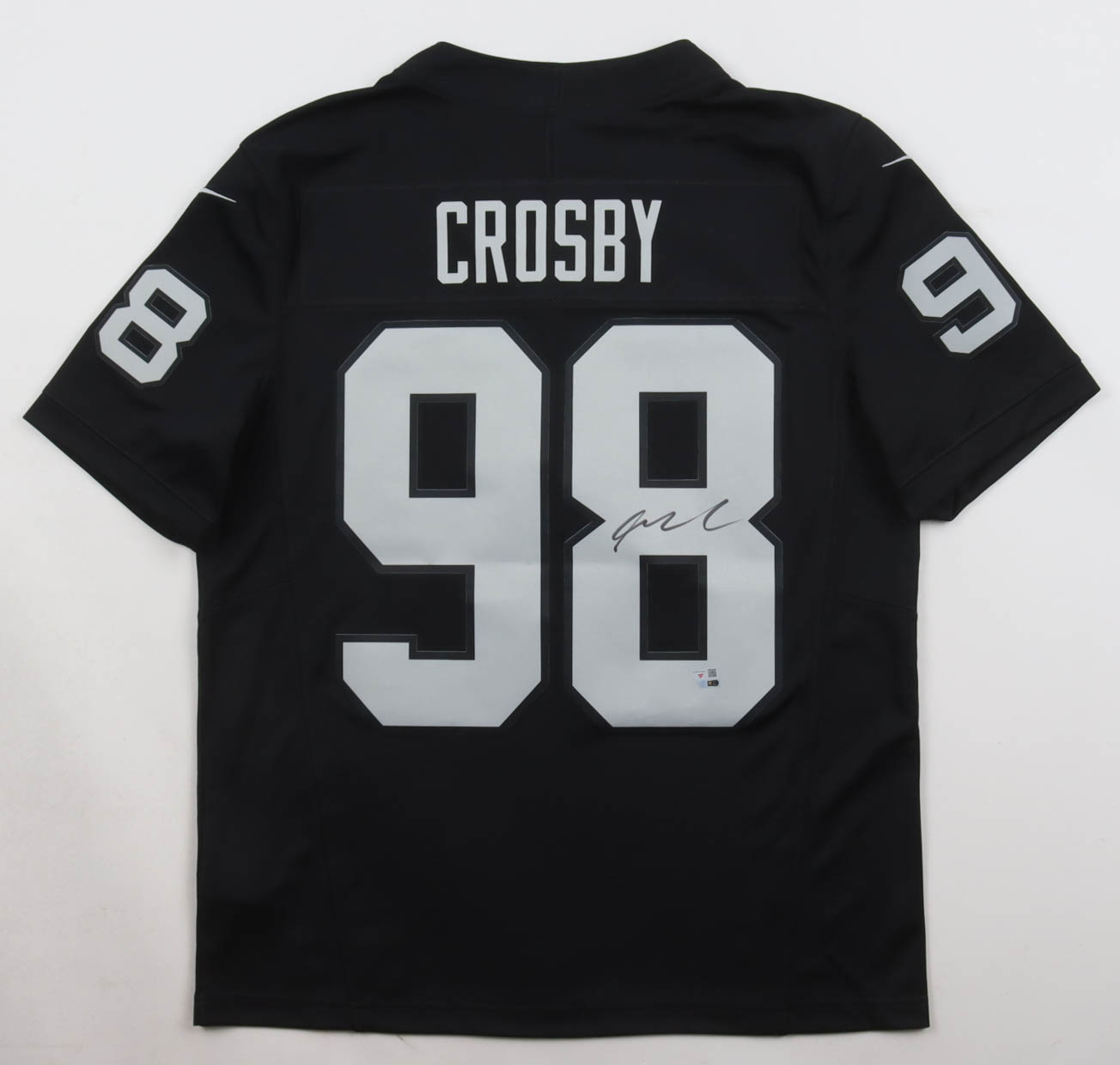 Nike authentic jersey with everything pressed on, size M. Hand-signed by Maxx Crosby (Las Vegas Raiders).