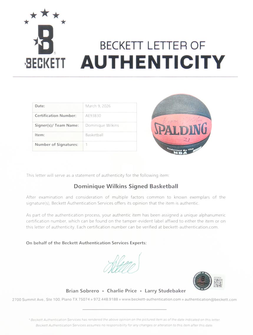 Dominique Wilkins Signed NBA Basketball (Beckett)