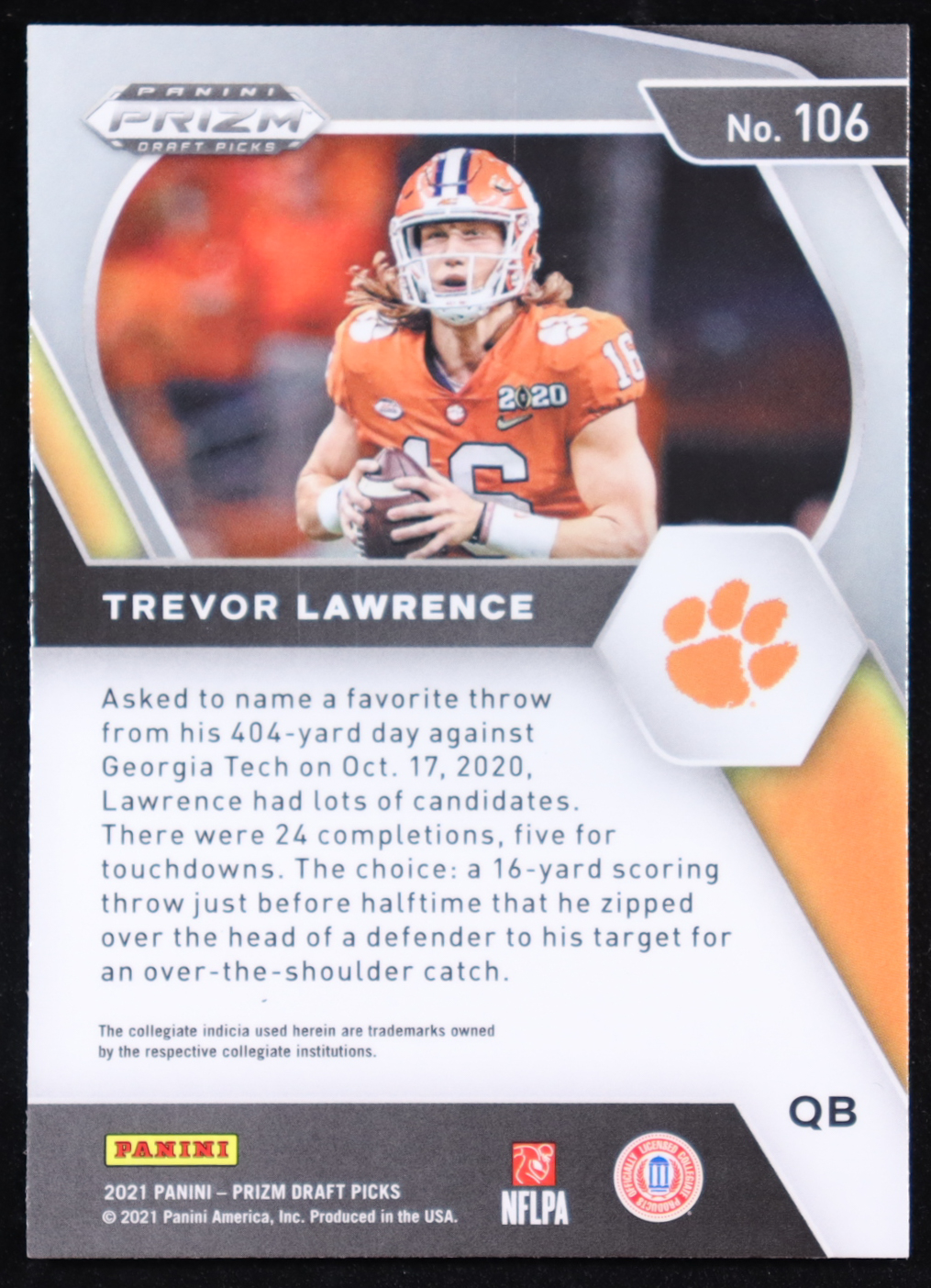 Please see photos for details regarding the condition of the card (Clemson Tigers).