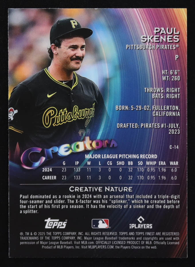 Paul Skenes 2025 Finest Creators Sky Blue Refractors #C14 #092/150