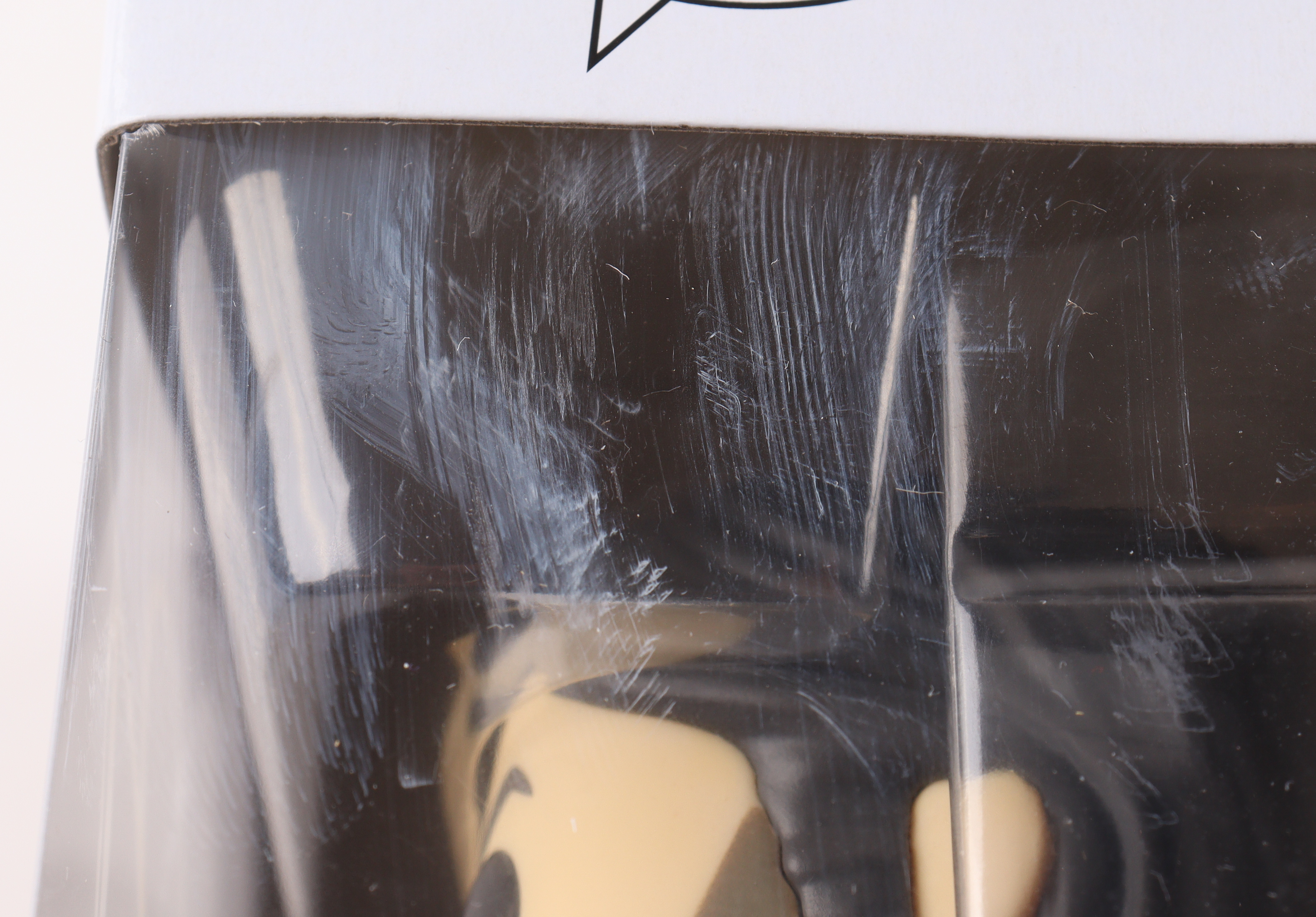 Vinyl figure measures approximately 4" tall and has been hand-signed on the packaging by Robert Trujillo. Please note, item has been window-swapped. Please note the residue on the window and the smudged signature.