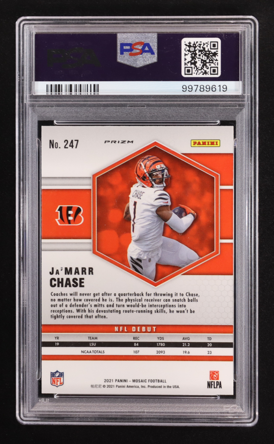 Ja'Marr Chase 2021 Panini Mosaic Mosaic Reactive Yellow #247 DEB RC (PSA 9)
