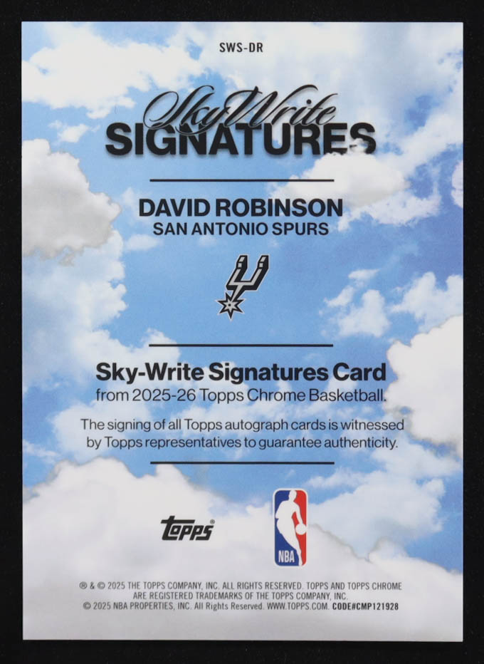 David Robinson 2025-26 Topps Chrome Sky Write Autographs Blue Refractors #SWSDR #047/150
