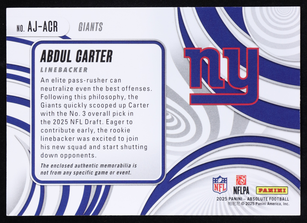 Abdul Carter 2025 Absolute Jumbo Jerseys #1 RC
