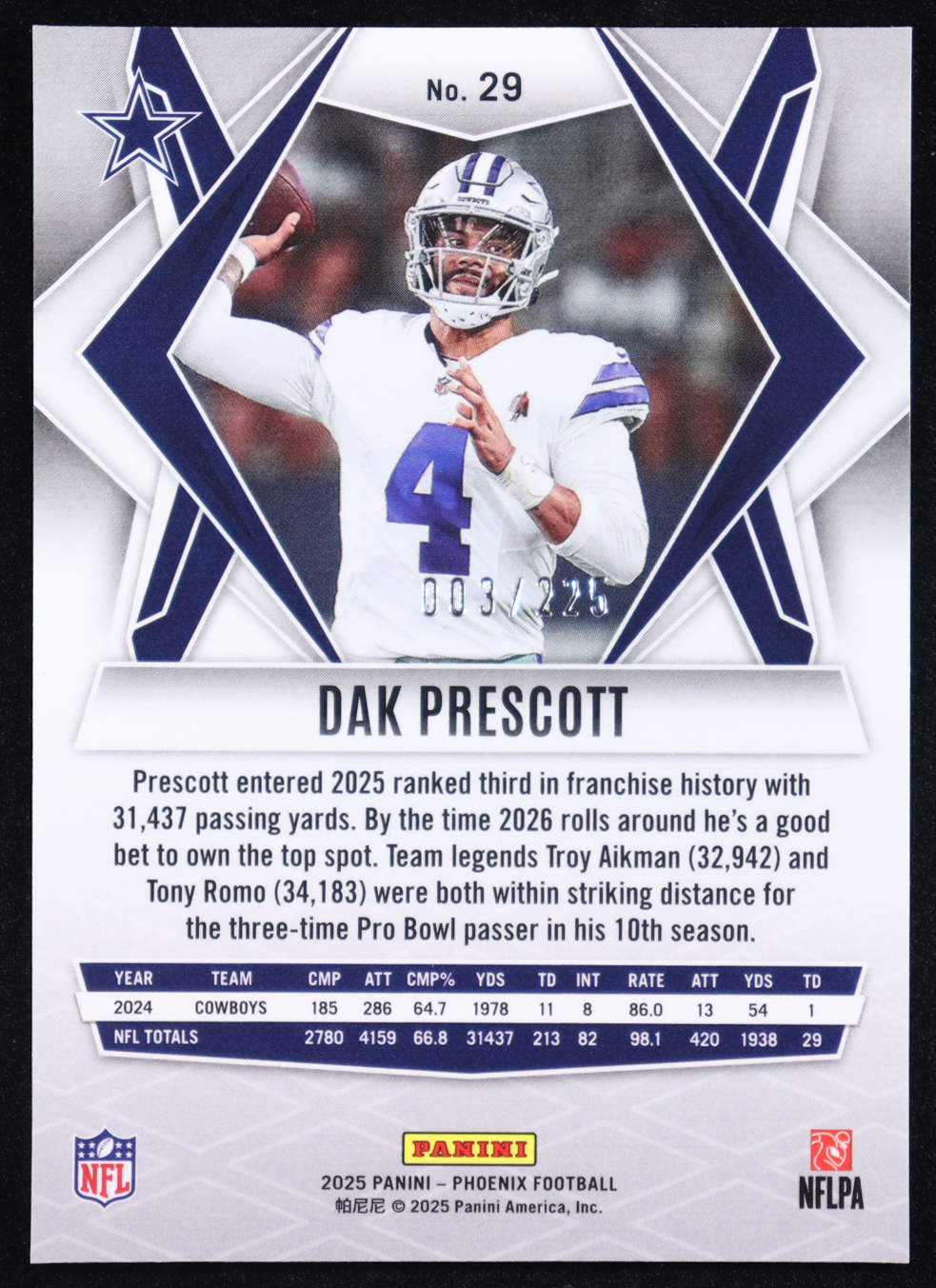 Dak Prescott 2025 Panini Phoenix Lime Green Lava #29 #003/225