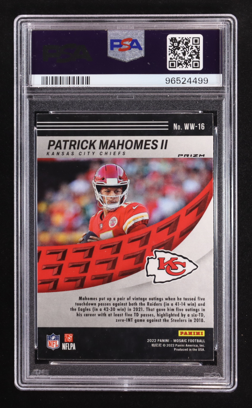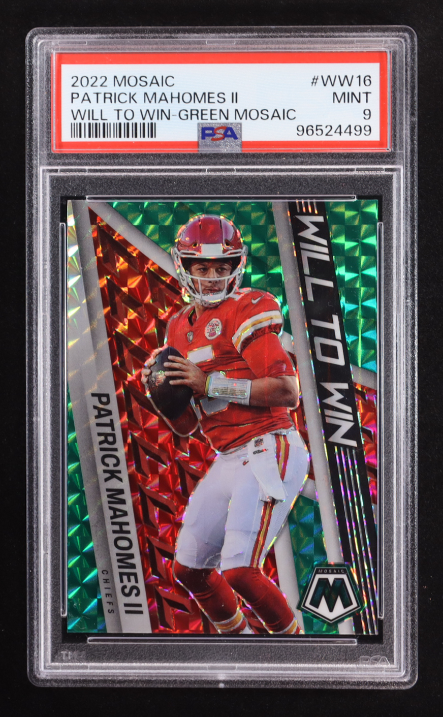 Patrick Mahomes II 2022 Panini Mosaic Will to Win Mosaic Green #16 (PSA 9)