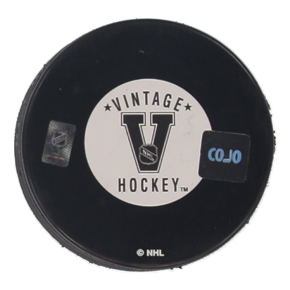 Quebec Nordiques logo hockey puck. Hand-signed and inscribed by Michel Goulet (HOF).