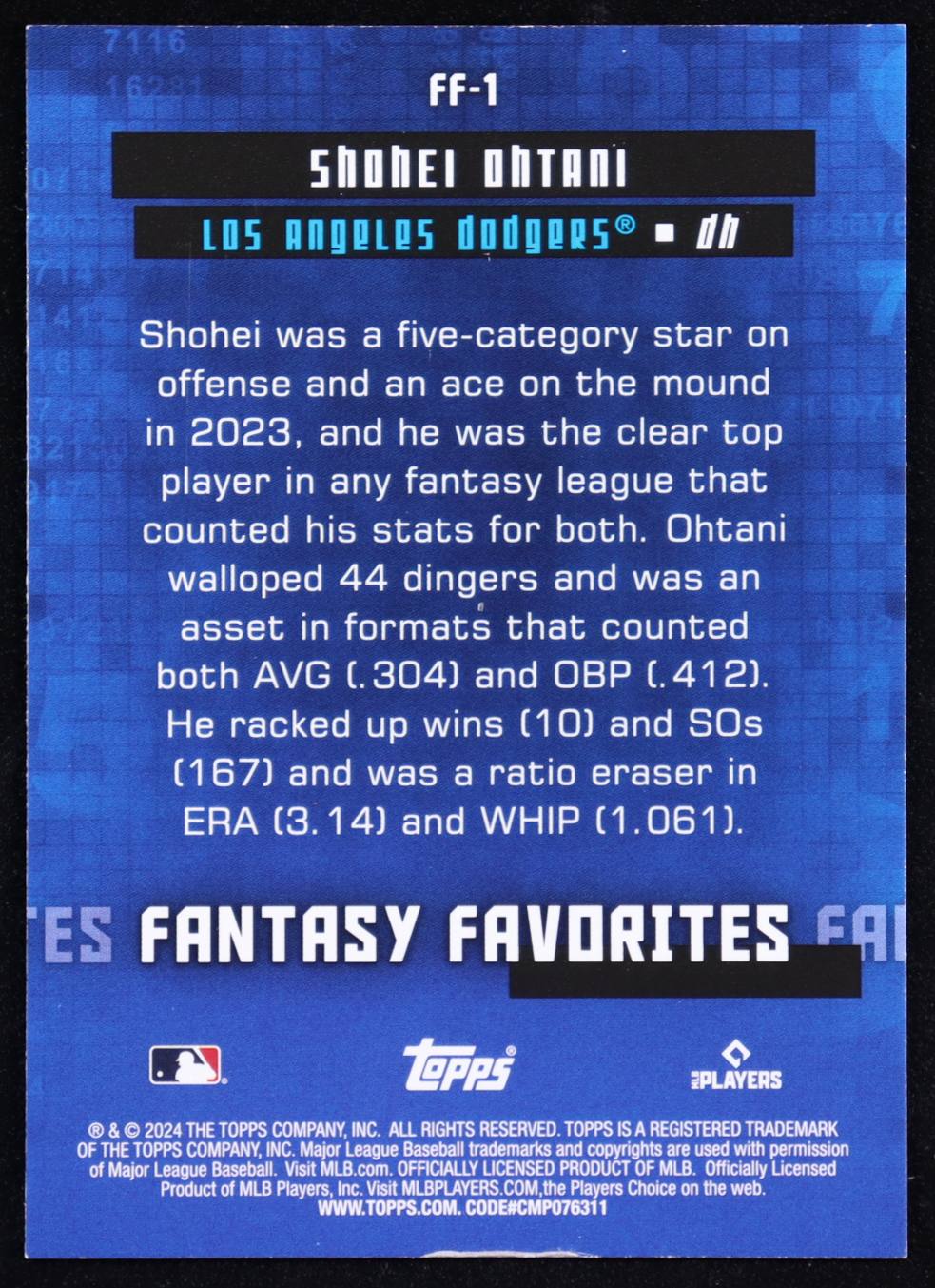 Shohei Ohtani 2024 Topps Fantasy Favorites Black #FF1 #287/299