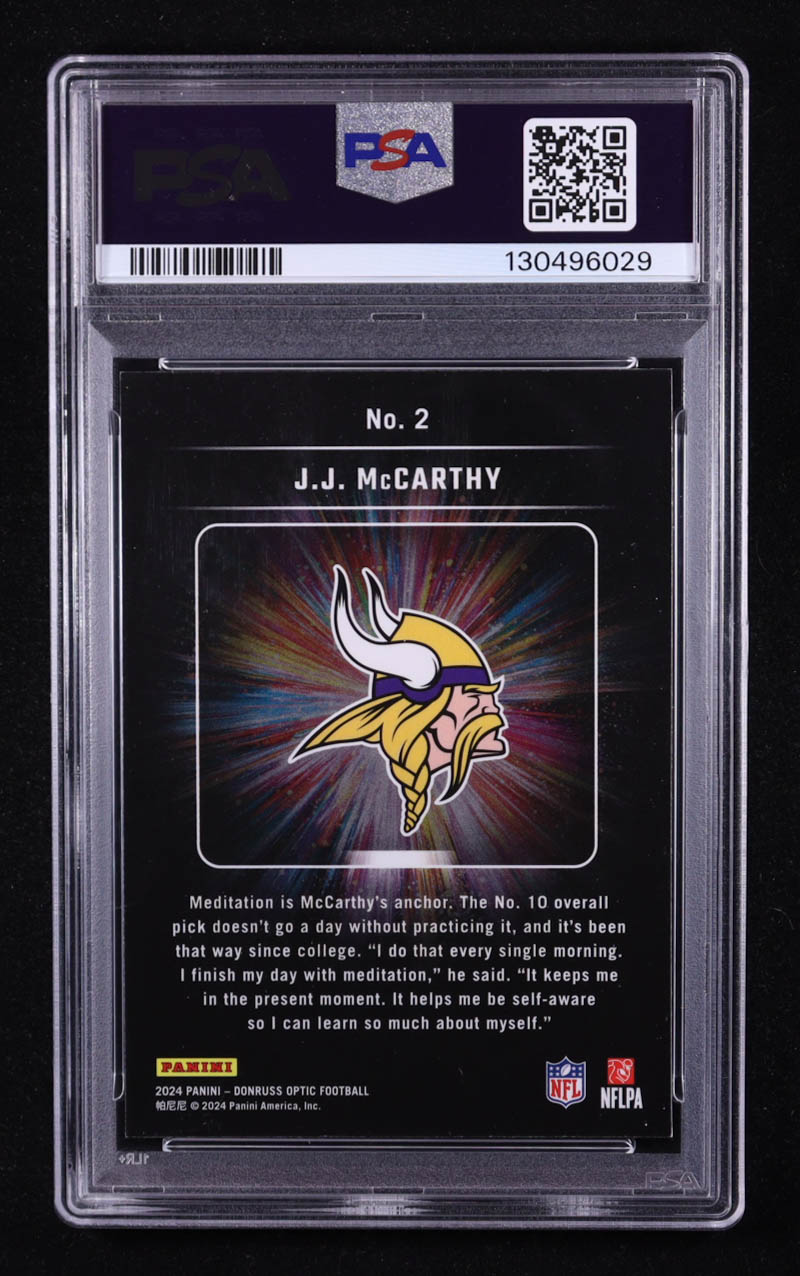 JJ McCarthy 2024 Donruss Optic Light it Up #2 RC (PSA 9)