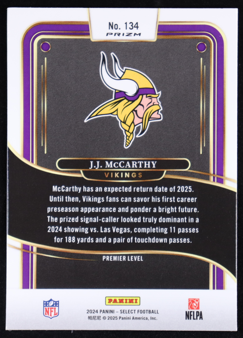 J.J. Mccarthy 2024 Panini Select Red & Blue Shock #134 RC