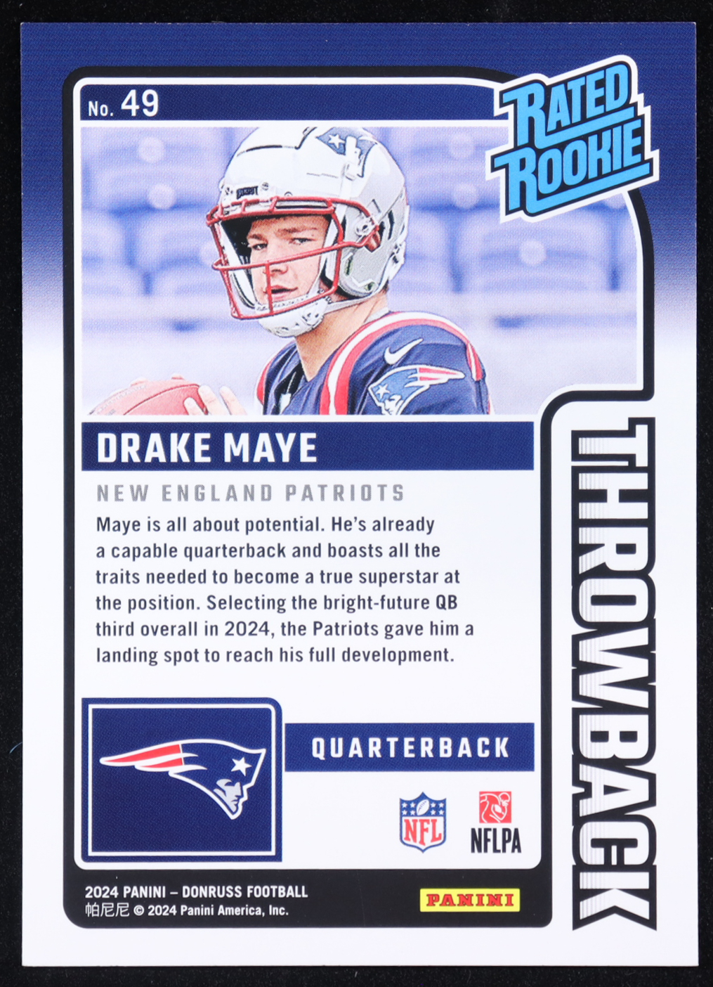 Drake Maye 2024 Donruss Rated Rookies Throwback #49 RC