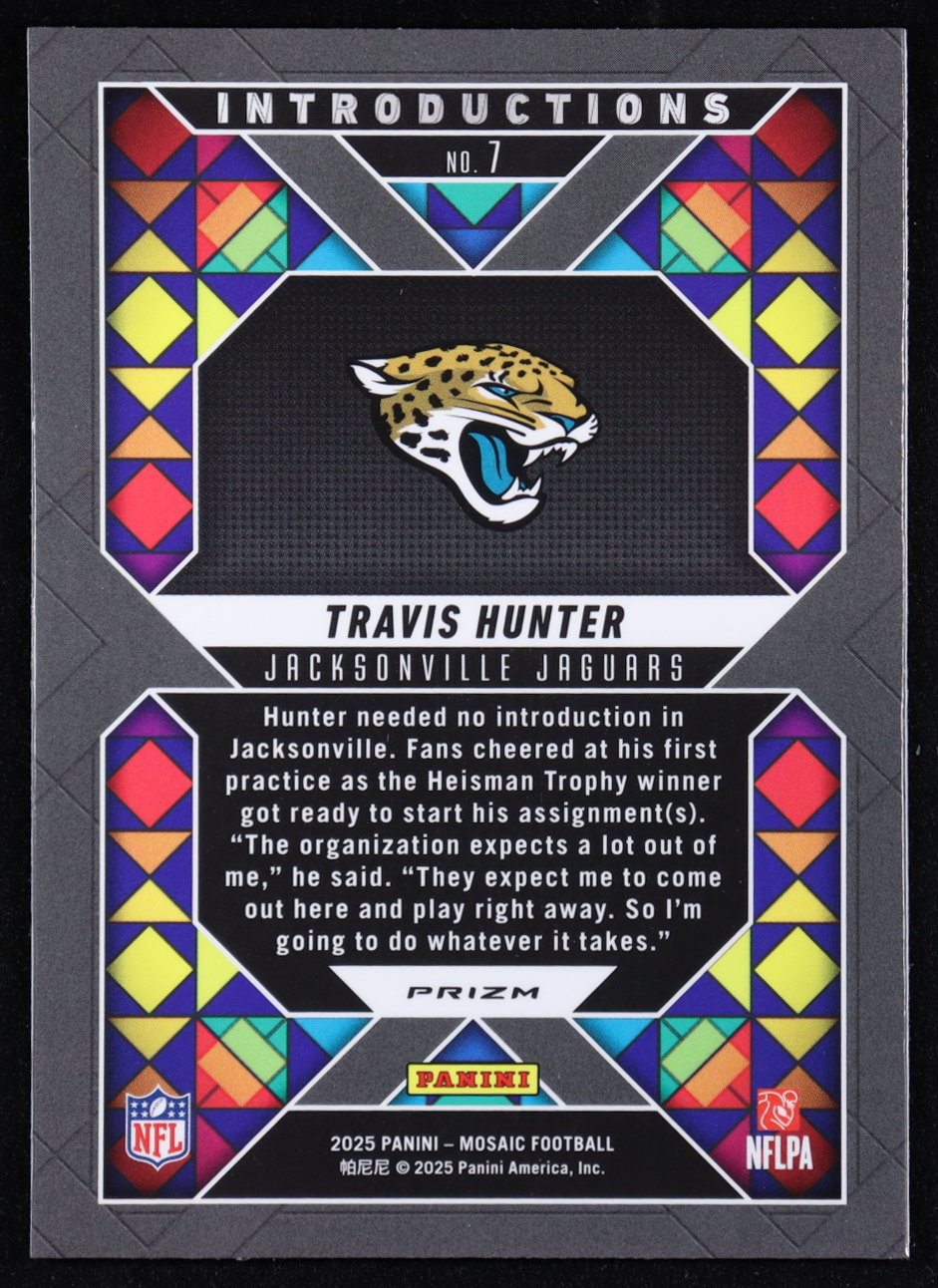 Travis Hunter 2025 Panini Mosaic Introductions No Huddle Silver #7 RC