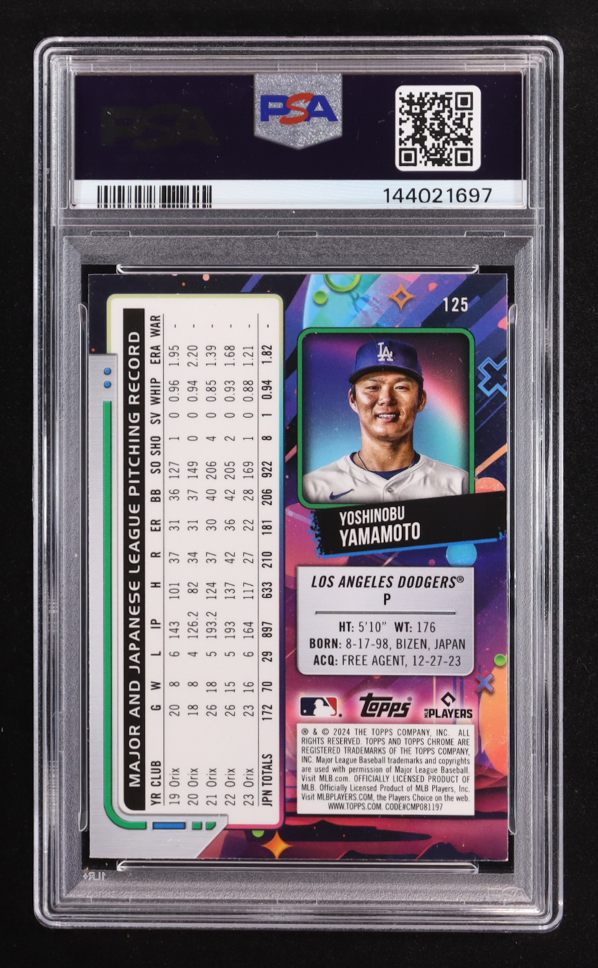 Yoshinobu Yamamoto 2024 Topps Cosmic Chrome #125 RC (PSA 9)