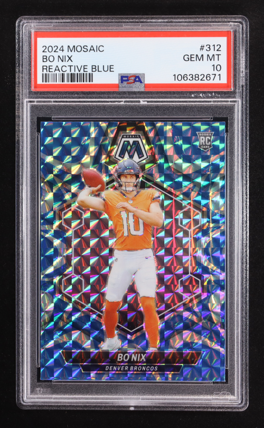 Bo Nix 2024 Panini Mosaic Mosaic Reactive Blue #312 RC (PSA 10)
