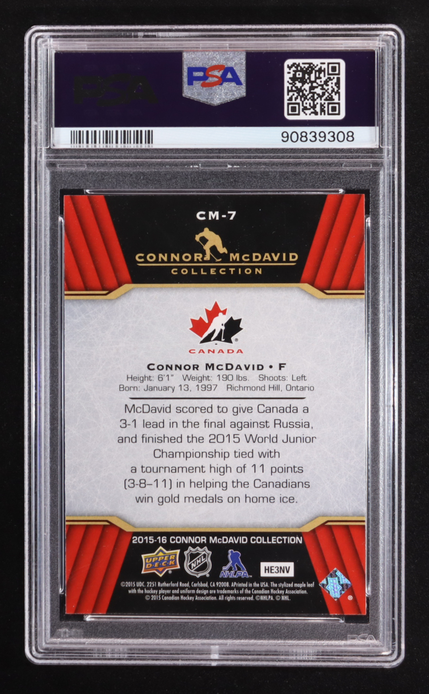 Connor McDavid 2015-16 Upper Deck Connor McDavid Collection #7 RC (PSA 10)