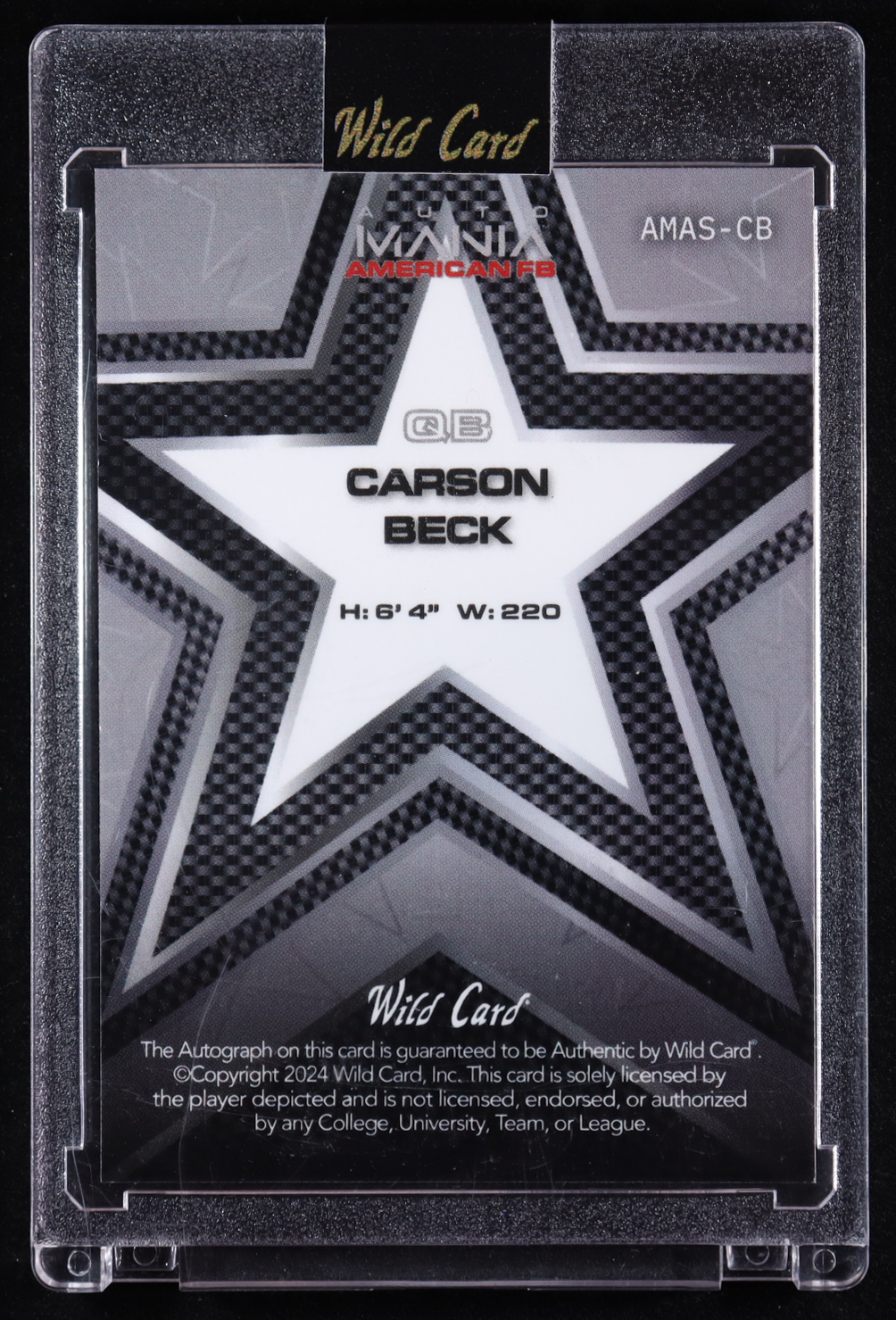 Carson Beck 2024 Wild Card Auto Mania American Star Cross Hatch Constitution #AMASCB #2/2