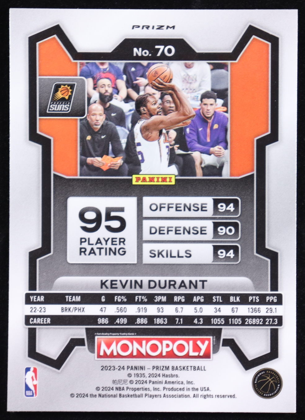 Kevin Durant 2023-24 Panini Prizm Monopoly Purple #70