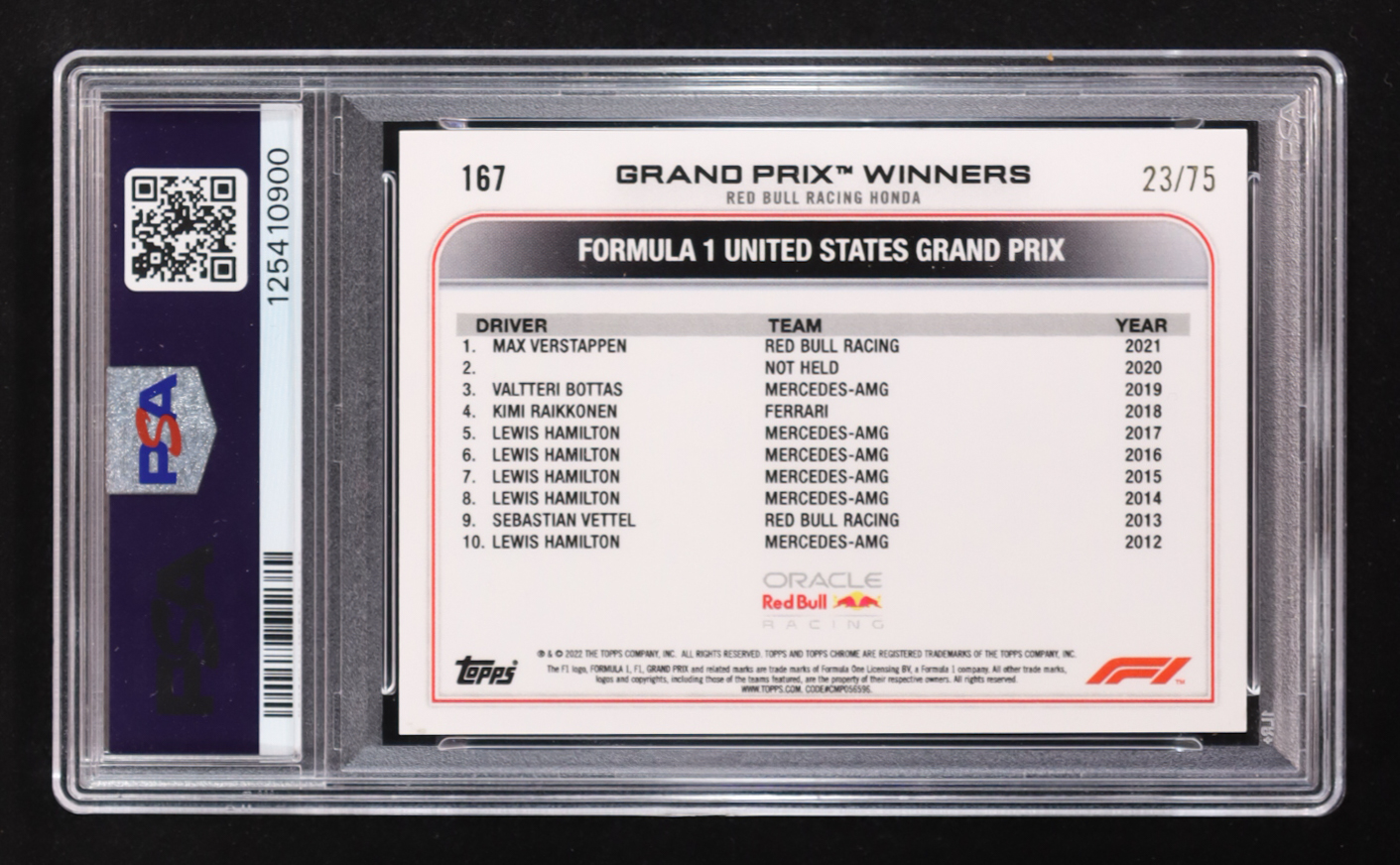 Max Verstappen 2022 Topps Chrome Formula 1 Pink Refractors #167 GPW #23/75 (PSA 9)