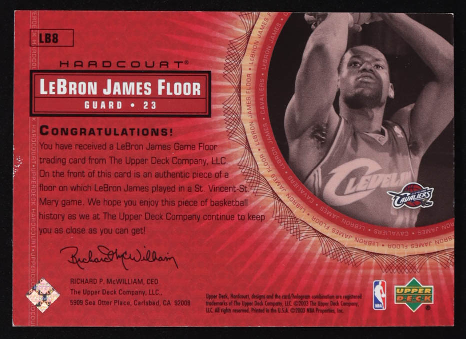 LeBron James 2003-04 Upper Deck Hardcourt LeBron James Floor #LB8 RC / Red Cavs JSY Shooting