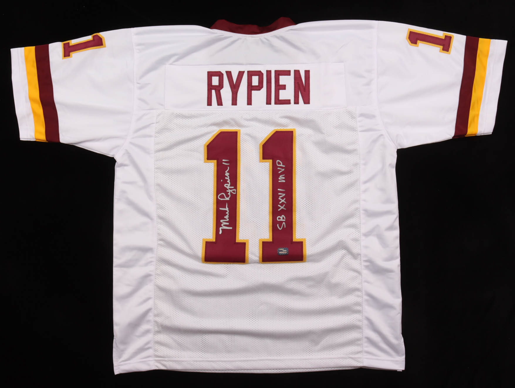 Custom jersey. Everything is sewn on, size XL. Hand-signed and inscribed by Mark Rypien.