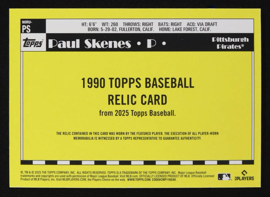 Paul Skenes 2025 Topps Update '90 Topps Relics #90RUPS