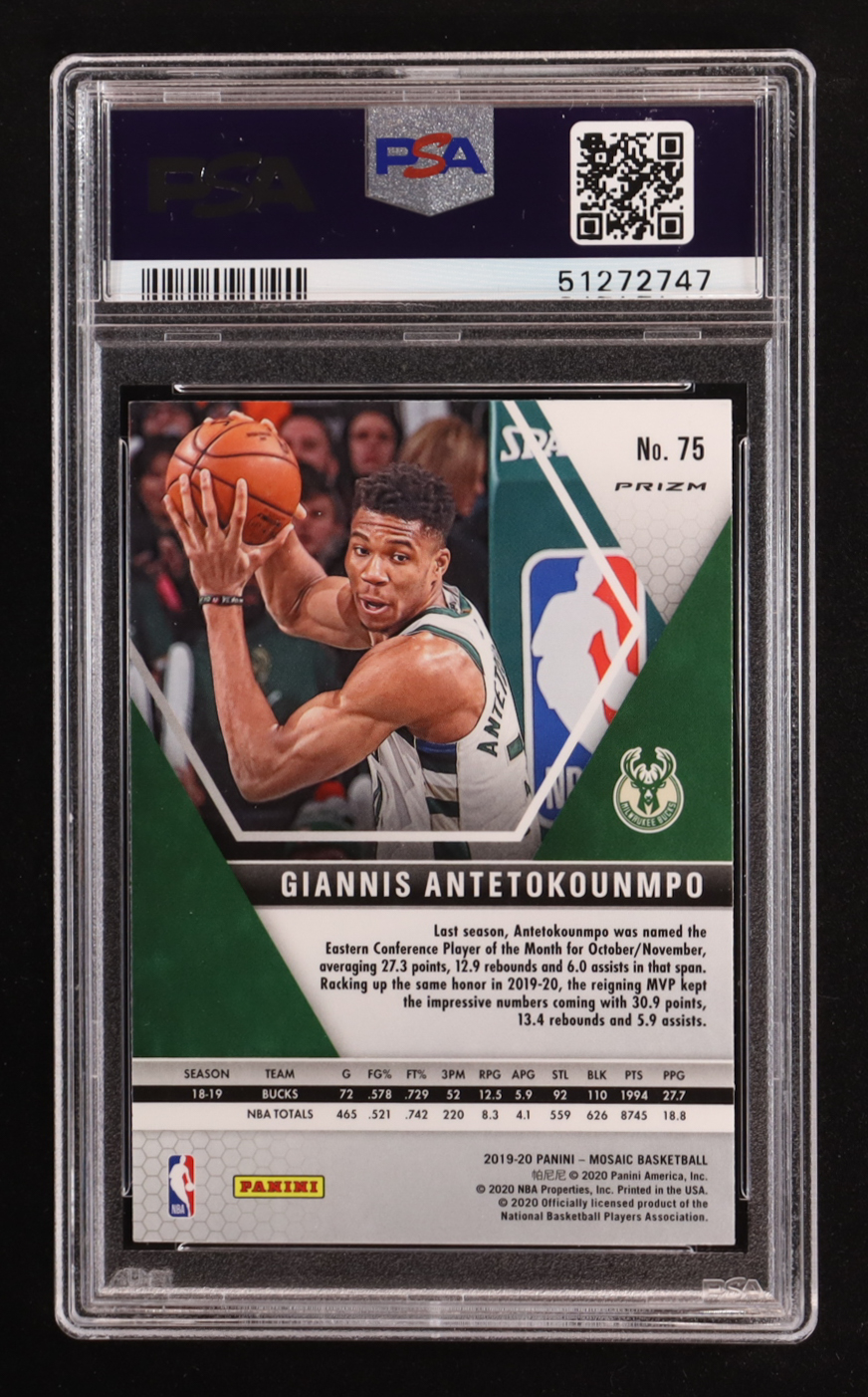 Giannis Antetokounmpo 2019-20 Panini Mosaic Mosaic Red #75 (PSA 10)