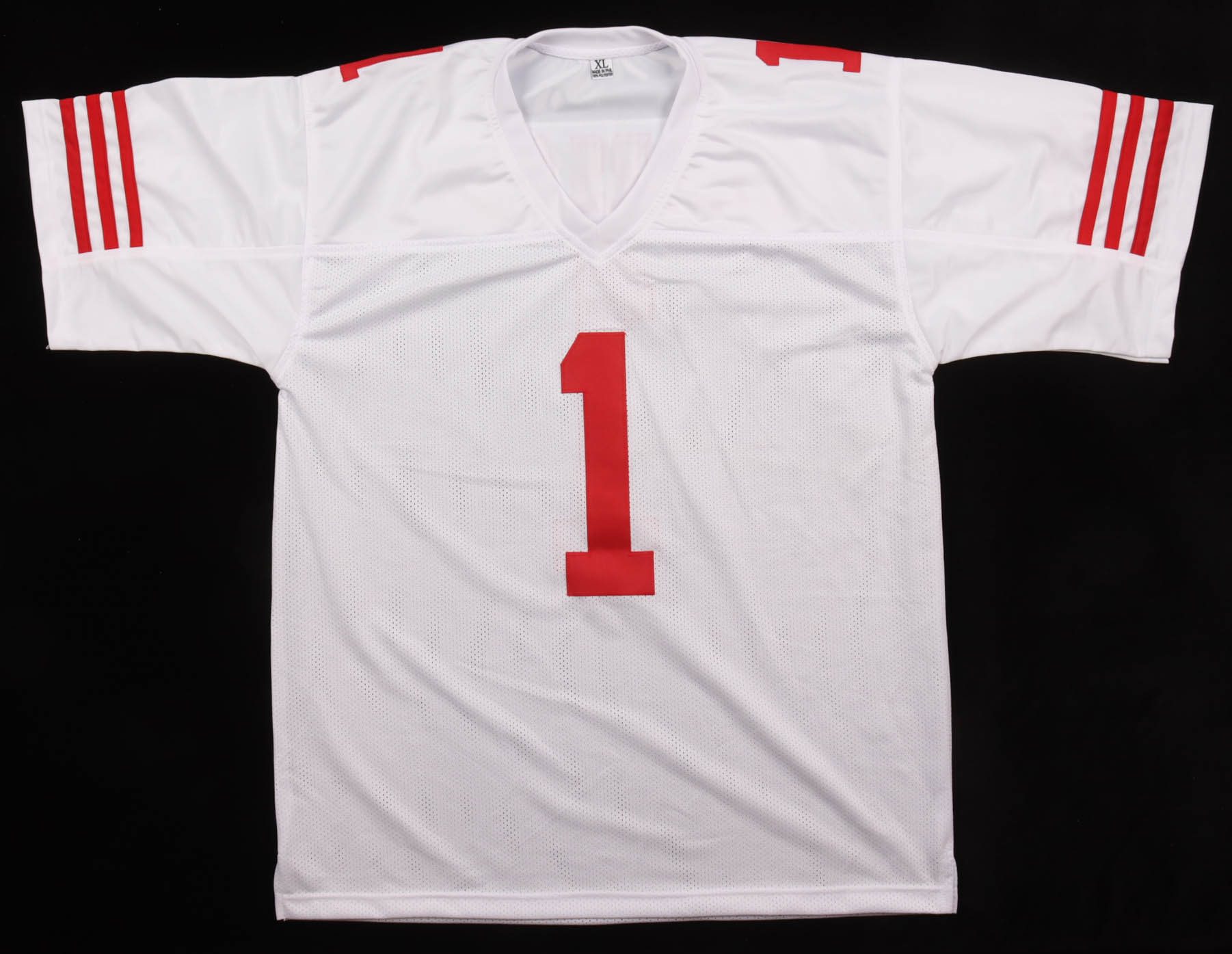 Custom jersey with everything sewn on, size XL. Hand-signed by Ricky Pearsall. Please note, there is residue from the hologram to the right of the reverse number.
