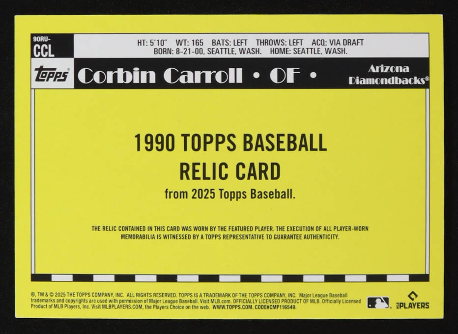 Corbin Carroll 2025 Topps Update '90 Topps Relics #90RUCCL